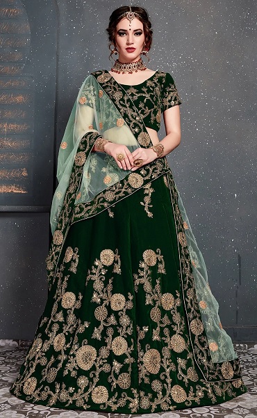 The latest velvet lehenga choli is filled with designs that are stunning to look at. They include: