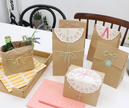 This can be a normal brown paper bag with a thick paper handle or coloured papers that are made from byproducts of paper, but the difference is these plain paper bags can also be crafted with handwork designs like sketching on the paper or ribbons stuck onto the paper. This kind of paper can be bought in the store at quite a responsible price.
