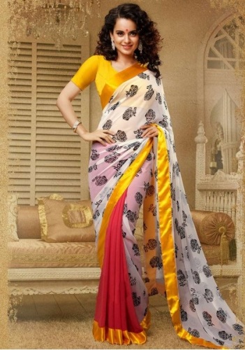 - Printed sarees come in all possible color combinations to match the ideas of a designer.