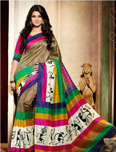 9. Multi Colored Warli Border Printed Saree: