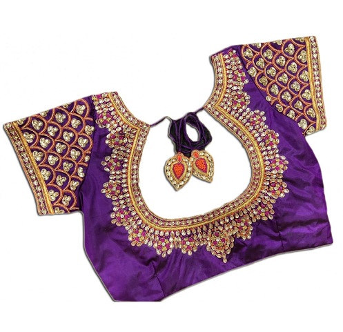 - Design: Purple Silk Blouse With Maggam Stone Work