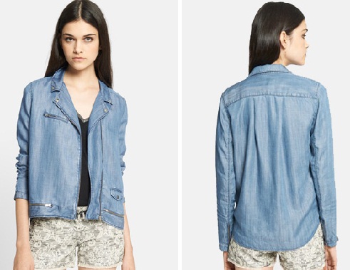Women’s denim blazer has a scored lapel, single-breasted with catch terminations on the front, long sleeves, two stashes, and an opening on the back. This jacket from Mast and Harbor is snappy. Fashion bloggers propose you group it with pants and pumps for a chic look.