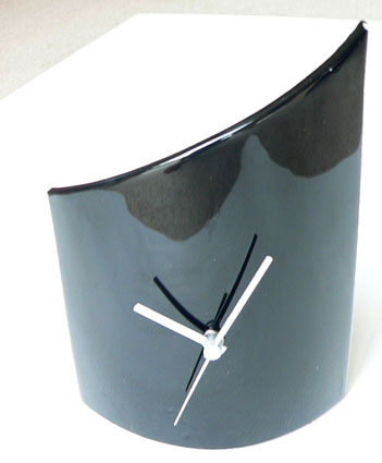 Keep this handmade, breathtaking black glass clock on your table and get ready for never-ending comments and complements from whosoever enters your cabin. This glossy small black clock has a lovely curved abstract design. The curved design makes it possible to set it on the table.