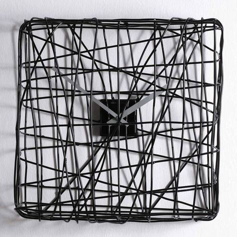 This clock has a very unique and spellbinding design. This modern black clock is distinctively stylish and looks very striking in any room of the house. The main striking feature is the black plastic strands that are interwoven creating a mesh effect.