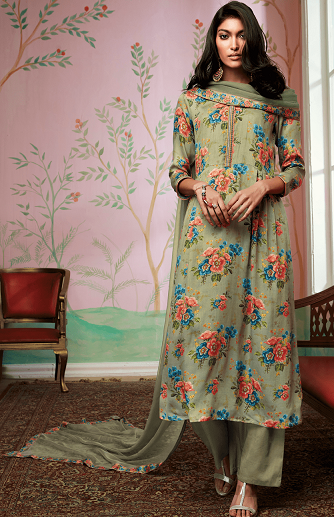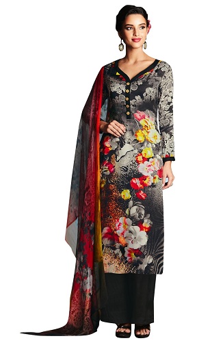 - Design: Grey Salwar Kameez With Digital Floral Print