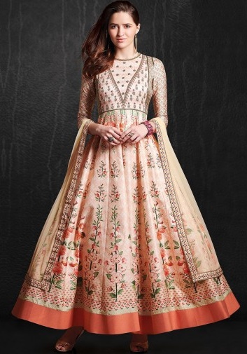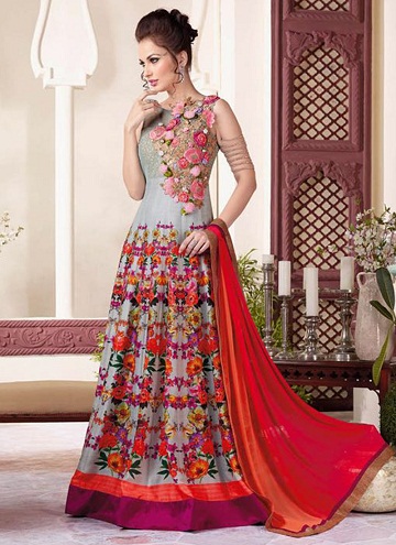 - Design: Grey and Orange Floral Printed Anarkali Salwar