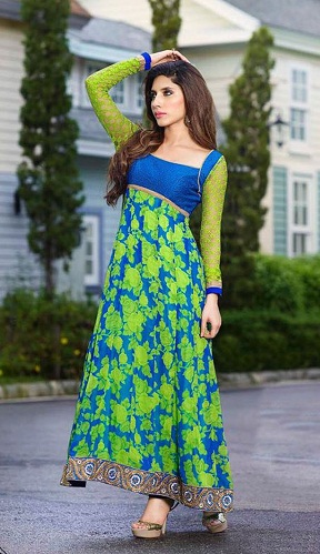 - Design: Blue and Green Floral Printed Anarkali Salwar