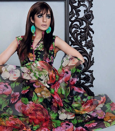 - Design: Black Frock Style Salwar Kameez With Bold Floral Print