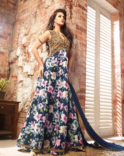 - Design: Navy Blue Anarkali Salwar Kameez With Floral Print