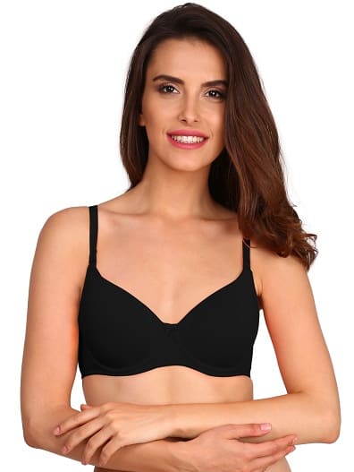 It is specialized in an appealing design; this black coloured bra from Enamor positively deserves a particular place in your lingerie collection. This energetic bra promises to provide your breasts with the desired lift, whereas the non-padded cups make it relaxed to wear all day long. This bra is made from a blend of 92% cotton plus 8% spandex; this regular-fit bra is light in weight plus superior in excellence.