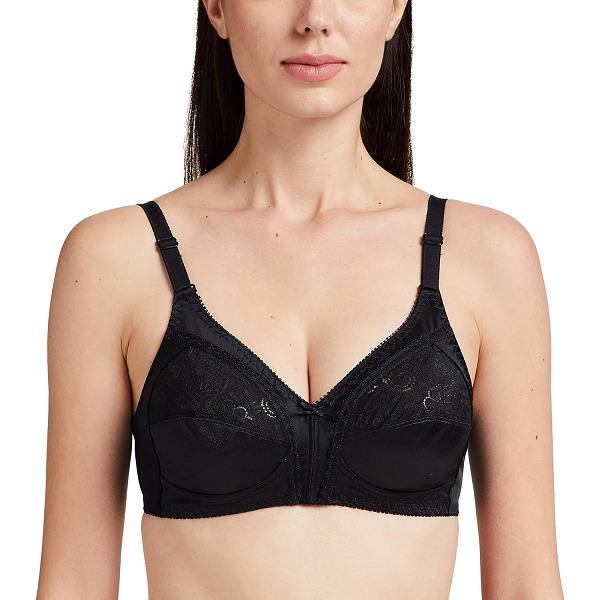 This is a non-wired bra with lace-lined cups giving total support. In this pack, it involves black-coloured bras. The material used in these is 90% polyamide and 10% elastane. Those who have petite figures and low breasts can prefer this bra for comfort and edge at the same time.
