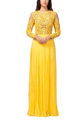 The yellow gown dress is general to all which has a long or full size. Generally, plane gowns are worn for parties or functions, but the colour yellow always gives an enhancing to command over. The yellow-coloured gown can even be worn with a belt around the waist.
