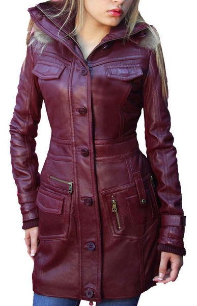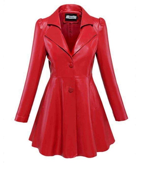 Isn’t this red trench coat style leather jacket adorable? This is perfect for women who love to opt for a leathery look but keep it dainty and feminine. The frill model of this jacket makes it a unique piece and can make you stand apart from the crowd. Wear this on a rainy evening over a cute dress and get ready to grab some eyeballs.