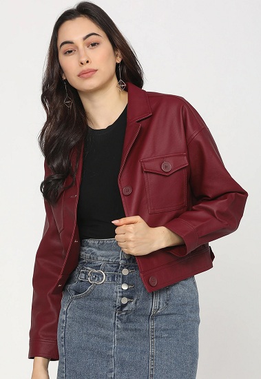 The burgundy leather jacket for women is perfect for a vibrant, bright, simple look. The casual day appearance with contemporary pattern and style is ideal for modern-day young women who prefer versatile outfits to add up and layer with other occasions. We love this among new women’s fashion leather jackets.