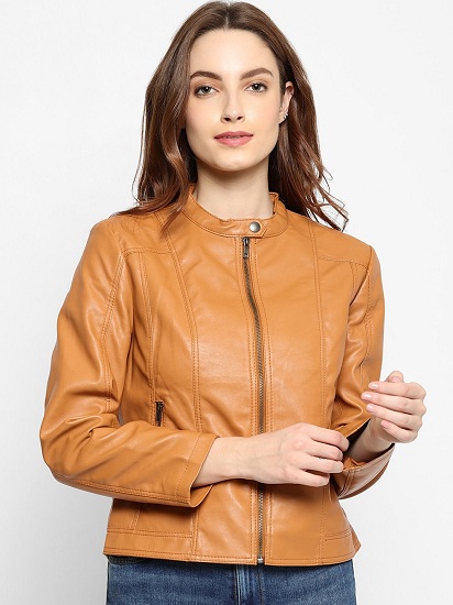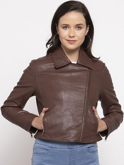 The tan-brown slim-fit biker jacket for women is indeed gorgeous. It comes with a new design and pattern, classic looks, and a timeless, unique appearance. This is perfect for versatile use, from any season to any occasion. Try this among recent ladies leather jacket styles, and you will love it.