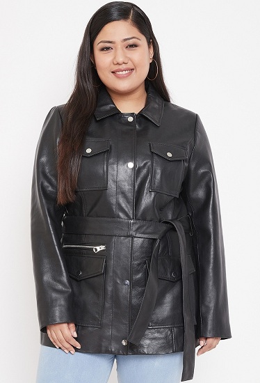 We love this plus-size women’s long-line leather jacket in black colour. This gorgeous beauty here is perfect for redefining the mainstream standard of beauty and adding chic contemporary vibes with vibrant looks to women across body shapes and sizes.