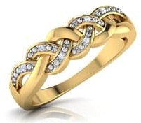 Looking for something stylish! Try a diamond ring design with a design inspired by a hairstyle. A braid design ring made from gold and diamonds gives a fashionable look with simplicity on ethnic wear, specially lehengas. The lovely design is studded with tiny CZ diamonds. The design signifies truth, power and direction.