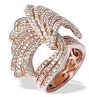 Want to have a trendy look with an ethnic combination? A ring diamond design with several curvy lines forming a knot gives a stunning and bold look. Made out of rose gold, the ring is embossed with crystal white diamonds to add to nuts beauty. The ring is important when worn on the first finger, representing leadership, ambition and decision-making power.