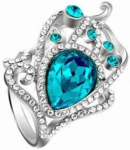 When jewellery is designed in a peacock design, it has a unique attraction. Similarly, when a peacock design is given to a ring, it gives various colours too. A platinum ring is given a peacock design studded with blue diamonds to give a colourful texture. The ring best suits dresses and sarees. Such rings represent happiness, purity, femininity, love etc.