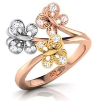Butterfly designs have always been attractive to girls of any age. A lovely diamond ring for women made with rose gold and diamonds gives the wearer a marvellous and funky look. The three butterfly designs are given different colour diamonds, making them colourful. The ring is widely carried on casuals. The design symbolises royalty, wealth, health and freedom.