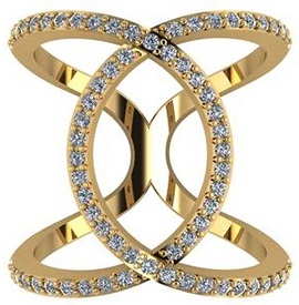 Want a simple but fashionable ring design to be carried in functions and regularly? A design forming the symbol of the infinite is the best for your choice. The gold ring can also be made with platinum or rose gold to give an elegant look. The ring design is decorated with tiny clear diamonds on the curve. The ring design represents infinite love, passion, empowerment and eternity. It is the best simple gift for someone special.