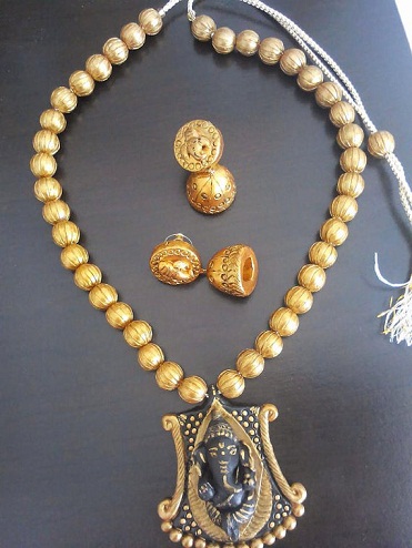 1. Terracotta Ganesha Necklace Set with Jhumka: