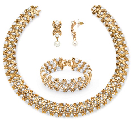 4. Palm Beach Pearl and Crystal Gold Necklace Set with Bangles: