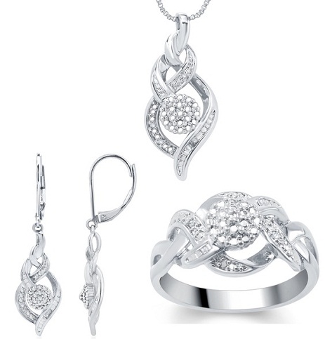 This Elegant charm style Fashion Diamond 3-piece necklace Set was featured with a highly detailed designed leaf and paired with matching studs in your choice of design. This gives an elegant and more eye-catchy look while associated with a thin chain. This is also available in a variety of designs, on silver fill chain. This is a lovely and best choice for bridesmaids, and you can wear this necklace set.