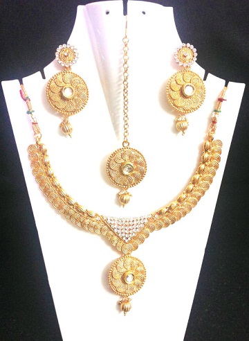 16. Party Wear Gold Plated Necklace Set: