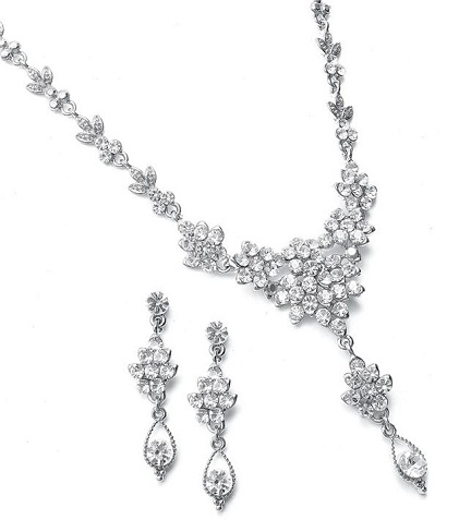 5. Bridal Silver Necklace Set with Earring:
