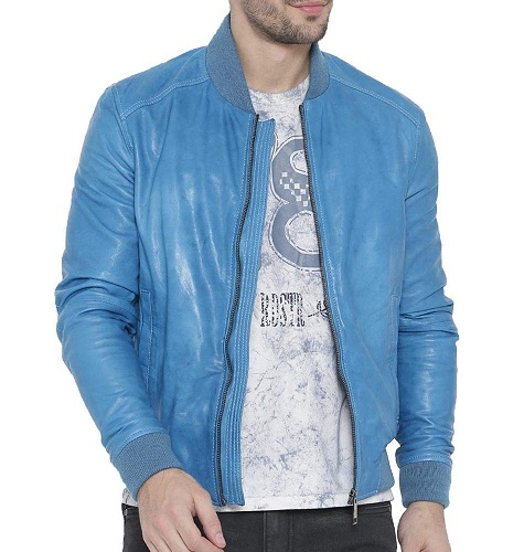 Wish to look easy-breezy for a casual trip? This light blue leather jacket makes you look amazing on a chilly, windy day. It comes with a sweater cloth on the collar and wrists for extra support and warmth.