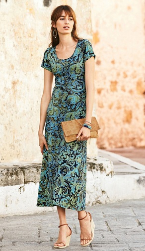 Women’s cotton dress is what is popularly worn for all the hot and humid days in India and around the world. These dresses are printed and come in all kinds of styles. This boat neck dress is perfect for a simple dress. The flared dress is stylish with pockets at the side. Boat neck designs are great to make you look wide especially for petite women.