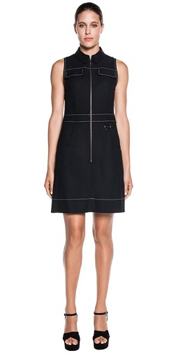 A new design style is top stitching. This technique involves having the garment stitched with a contrast color thread on top to give it a design. This top-stitched cotton dress is very structured and the front zip gives it a tailored look.