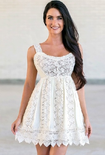 Here is a vintage-style cut work material cotton dress that is made truly dazzling. The simple cotton dress is made with spaghetti straps and flapped bodice. The scalloped edges of the top and the skirt are very pretty. This is perfect for the summer. Cut work is one of the oldest design styles and it now making a comeback.