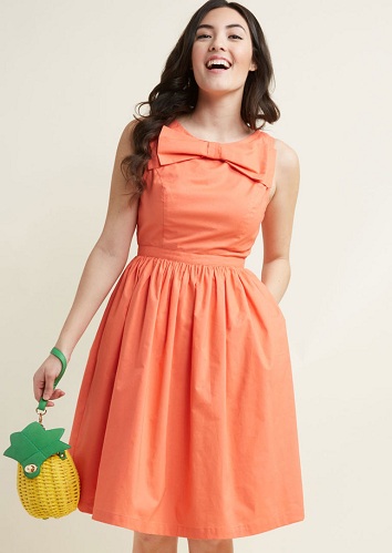 You can try out this short cotton dress that is belted and has the fit and flare design. The dress is sleeveless and the round neck that is banded looks extraordinary. This dress can easily be worn for formal occasions along with simple accessories.