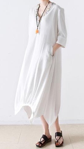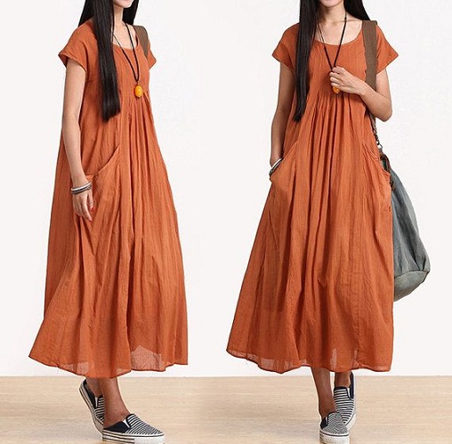 A loose cotton dress is a great option for the summers. This dress has the style of a fashion statement and yet is very comfortable. The loose fitting dress can be worn for casual outings and gatherings.