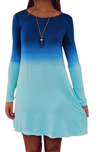 Another choice than the colour block technique is the colour gradient technique. This involves having the colours merged from a dark shade to light. This gradient colour dress in cotton is perfect for the summers as well, as it cools down the look. Choose summer colours like blue to get the maximum effect.