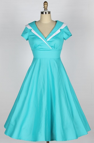 A vintage and classic style dress is the one with the wing collar. This shows the collar that starts at the front and has a flap at the back. It is usually edged with a contrasting material. This makes the dress quite classic and you will feel great in it. The flare of the skirt is full and looks good.