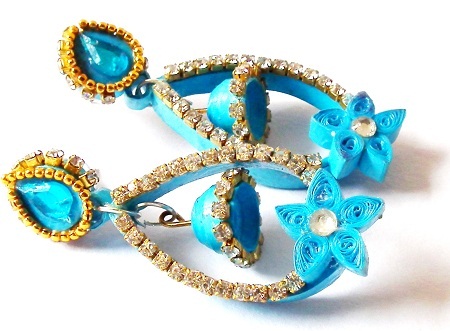 Paper quilled earrings are coming in a variety of colors and blue colour earring is the most attractive one especially when they are worn with the matching dress. When you pretend to get this, you may get numerous designs and patterns as per your desire.