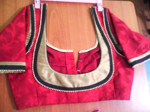 - Blouse Design: Red Patchwork Back Neck Bridal Blouse