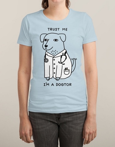 Funky t-shirts for ladies are another section where the wordings and slogans make a mark. Even animal themes are majorly used. Here the dog is depicted as a doctor. Choose your favourite animal to get a funny t-shirt.