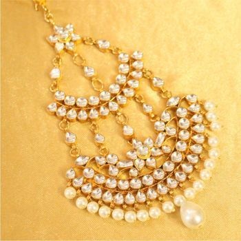 Stone Studded Maang tikkas are very hot on in trend in the category of kundan tikka designs, as they come in numerous designs and styles. One can find a different color of stone and crystals according to their outfits. The beautiful clear Stone Studded kundan tikka jewelry gives you a perfect appeal in your social occasions.