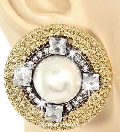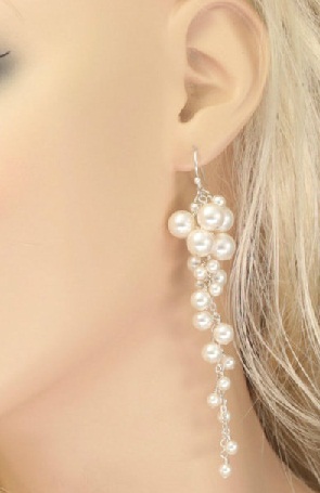 The big earring with pearls in this image looks like a bunch of grapes hanging from the grape plant. Earring big with pearls looks elegant.
