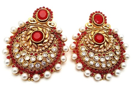 These big round earrings with stones look perfect. It has red stones and kundan work on it. However, it looks heavy but will look beautiful on traditional dresses and steal all attention.