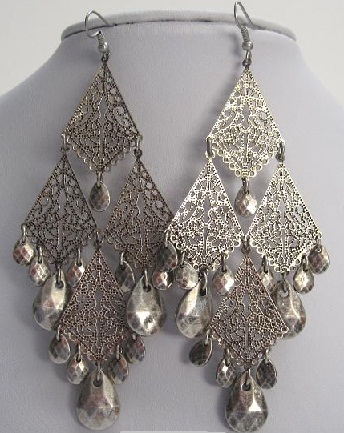 This big silver earrings will touch your shoulders. Though it looks greyish, its design style is completely adorable, having four trapeziums making one trapezium. This will look great on western outfits.