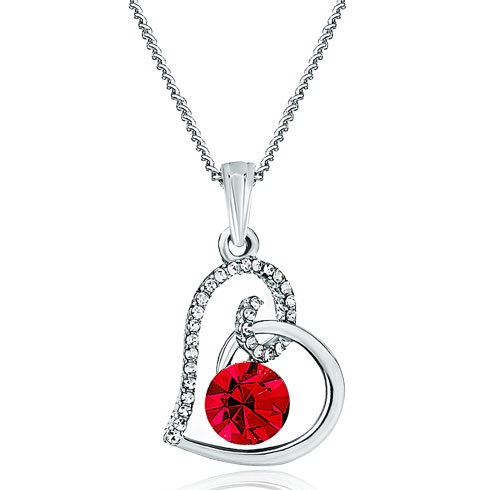 Get this brilliant red ruby pendant set in a sterling silver heart shape. The pendant is also studded with tiny Swarovski crystals. The ruby gemstone is round in shape and is set beautifully in the pendant. This makes for a perfect gift to present to anyone born in July.