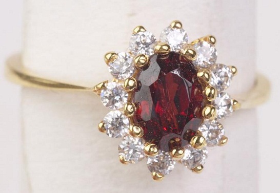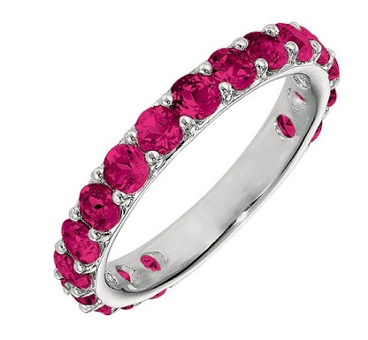 Check out this dazzling July birthstones ring that has tiny ruby stones set wonderfully around it. The ruby stones are cut perfectly in a round shape and make the ring look full. This is perfect for a special occasion or even as a birthday or anniversary gift.