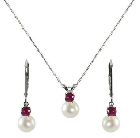 Present your loved one with this stunning and eye-catching pearl and ruby necklace set. The July birthstone jewellery item is perfect as it has a simple pattern consisting of a pearl bead and a ruby round stone set above it. The pattern is very delicate and perfect for daily use too.