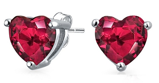 This is another wonderful heart-shaped July birthstone jewellery item. These heart-shaped ruby stones are set in silver and are made into stud earrings. The gemstones are large in size and therefore make a face look fuller. The stud earrings are perfect to go on occasion wear and look very regal.