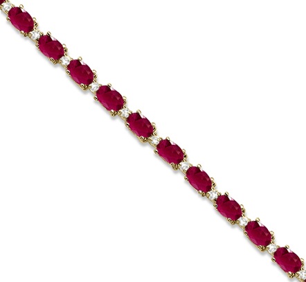 Here is a wonderful ruby tennis bracelet set in gold. The colour choice of red and gold is classic and makes a wonderful rich bracelet. The ruby stones used here are oval in shape and are set beautifully around the bracelet. This makes the hands look elegant and charming.